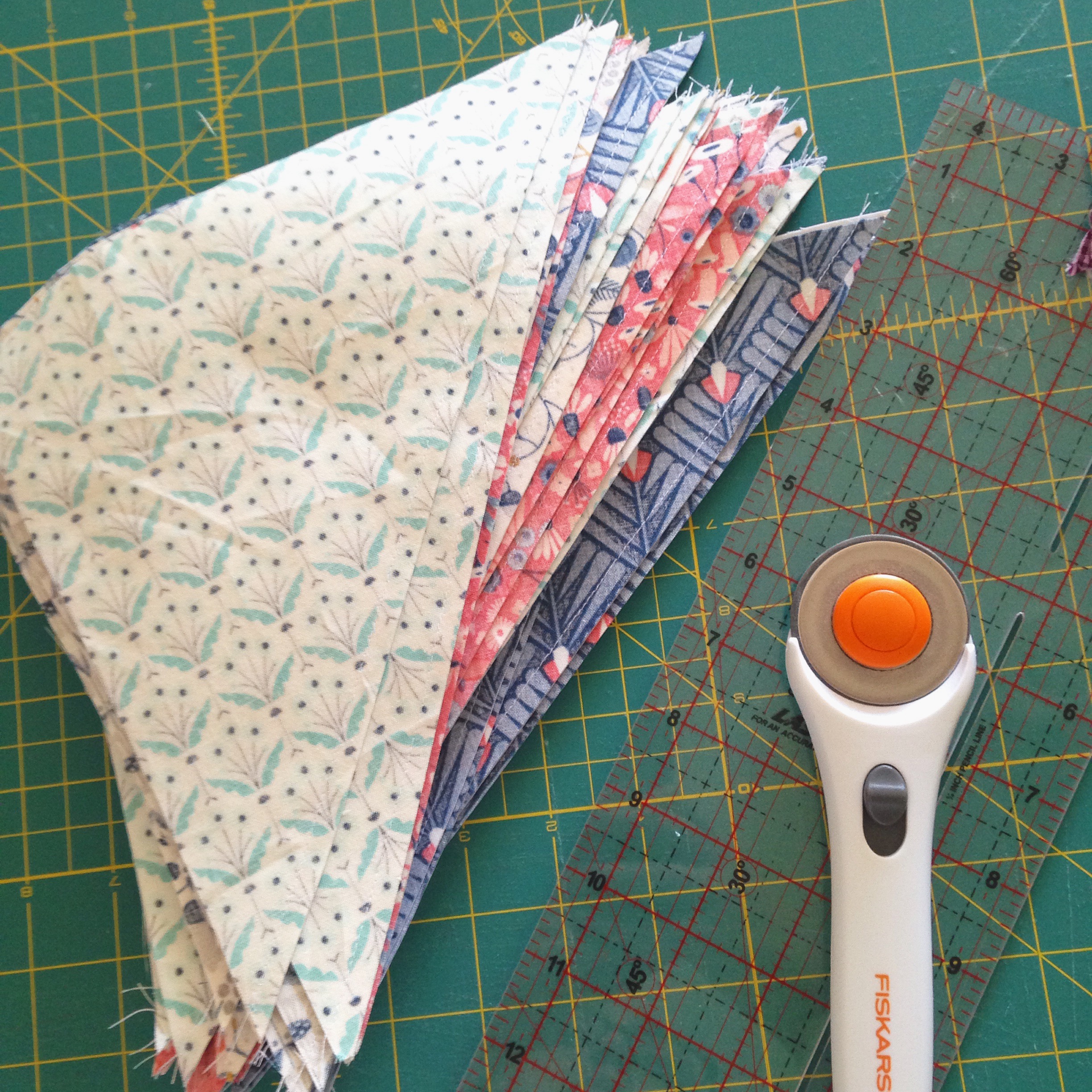 So I’ve had the idea swirling around my head for quite a while to try out the Mountain Block with these fabrics. I thought, because the range is called ‘Wildwood’ and mountains are usually surrounded by wood, that it would sort of tie-in together nicely. Plus the fact that I’ve seen some beautiful quilts on Pinterest using the block and thought they looked ah-mazing! So after a good bit of research and trialling the block out, I begun the real thing today with really good results so far!
