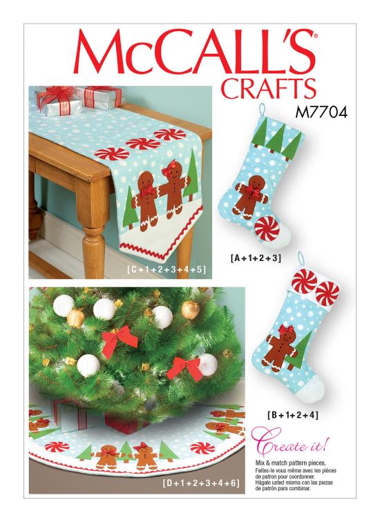 I came across the perfect pattern quite randomly when I was replenishing our paper patterns stock at work one day. It’s a McCalls’s pattern (M7704) and features the sweetest gingerbread people paired with Christmas Trees and Christmas candies. I just thought the designs together were really lovely and are totally the type of design I love around this time of year.