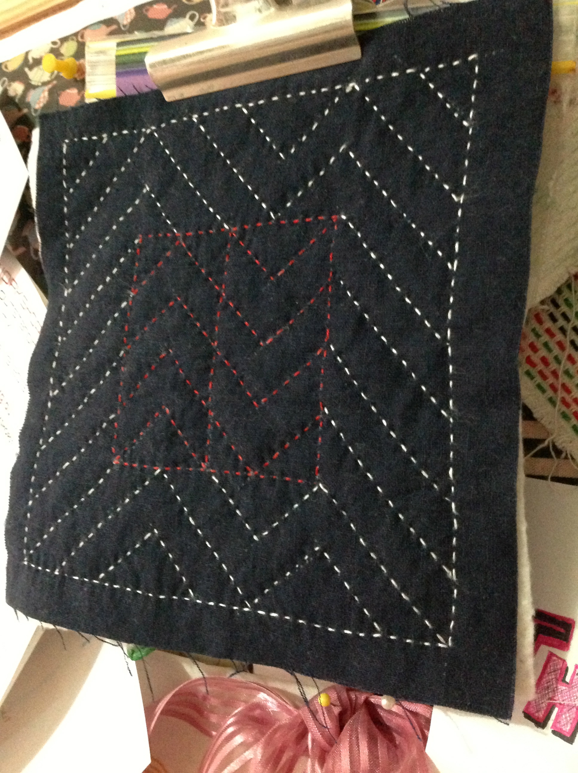 I also thought I would share my Sashiko embroidery project with you. This is another technique I’ve learnt in my textile class. This design has been based on two chosen forms of inspiration: Chevrons and direction (as in life’s direction).