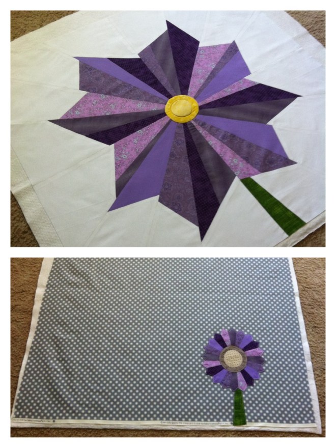 The next step now is to decide how I’m going to quilt it so I can fully emphasize the overall design and message of the quilt, as well as to highlight the hand pieced flower blades.
