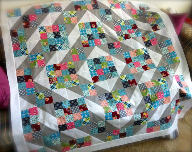 Not to seem ungrateful for winning such an awesome prize, but I’m in two minds whether I like it or not. You see, I’ve grown such a huge attachment and sentimental feeling towards my old sewing machine that I found it quite hard to make myself pack it away and then unbox this sweet little beauty in it’s place.  I’ve made some really beautiful quilts on my old sewing machine – Jacob’s Ladder being it’s last (!!) and taught myself new and exciting techniques (as well as failing miserably in a few others). I would sit down in front of it with greedy pursuits and selfless projects and it would always be wonderfully loyal and trustworthy to get everything finished to my picky satisfaction!