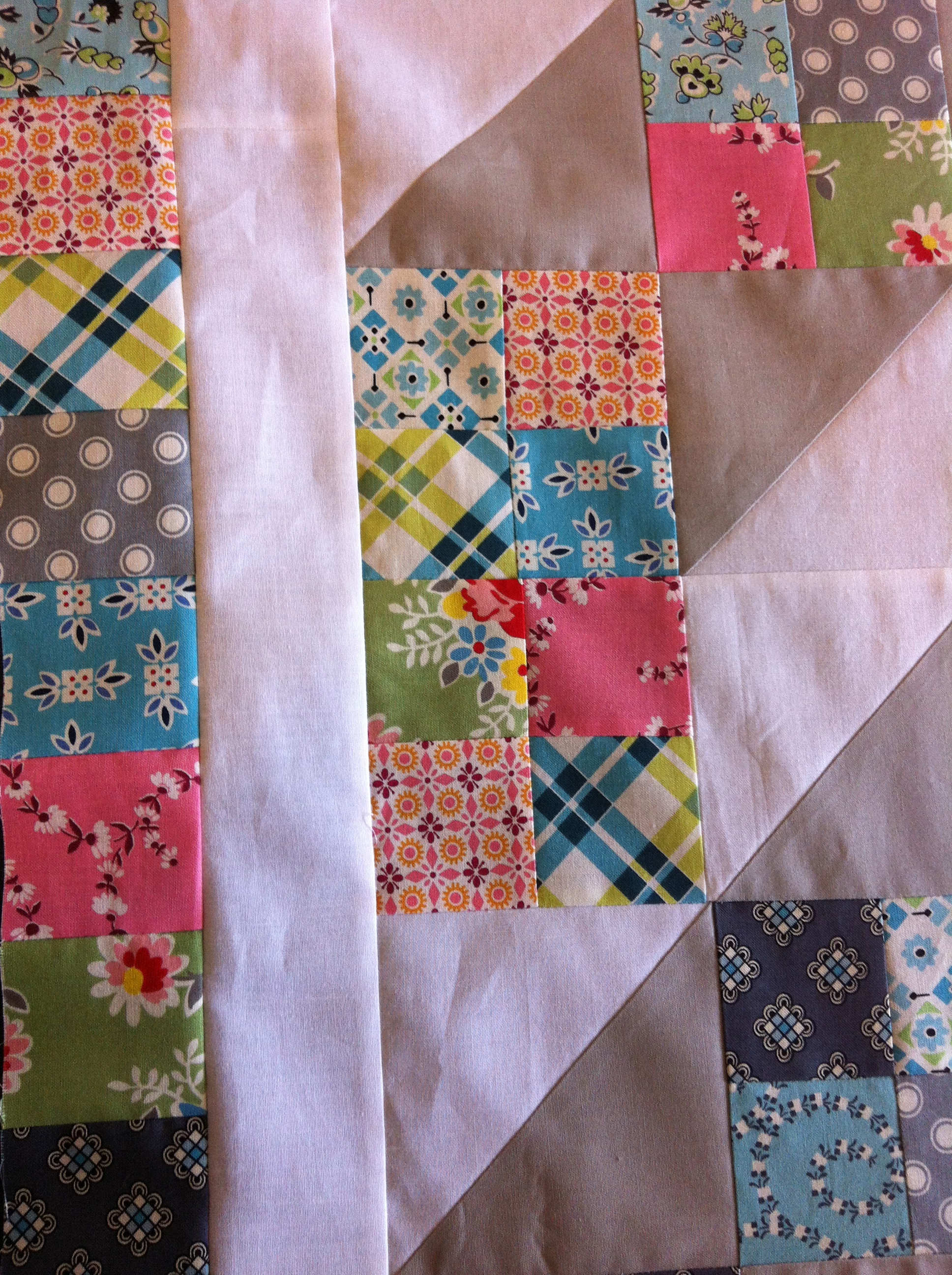 At the moment I have a crazy crush on what the back of the quilt top looks like…The other night when I was taking a break between sewing and pressing, I had the quilt top laying on top of the ironing board with the light of my desk lamp shining through the fabric and it lit up the all the pressed seams and made it look like an illuminated cathedral or stained glass window…
