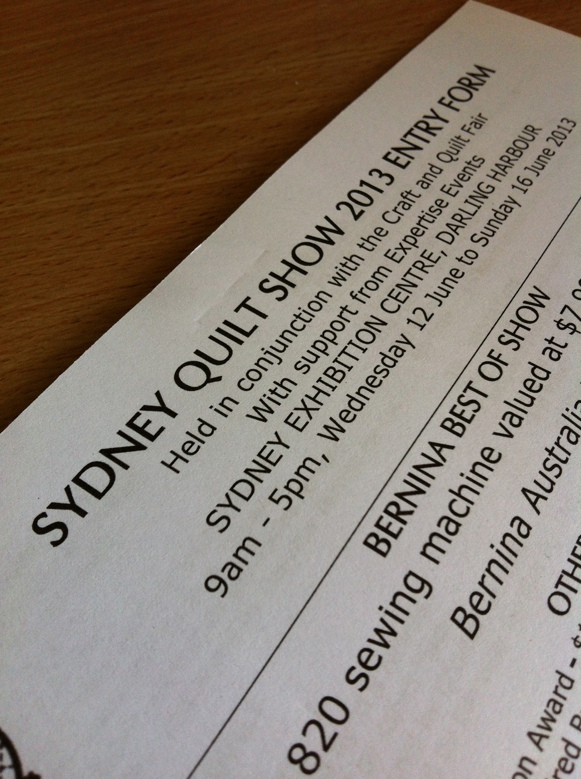 Then last week, I receive an email containing the entry form for the 2013 Sydney Quilt Show. Yay!!