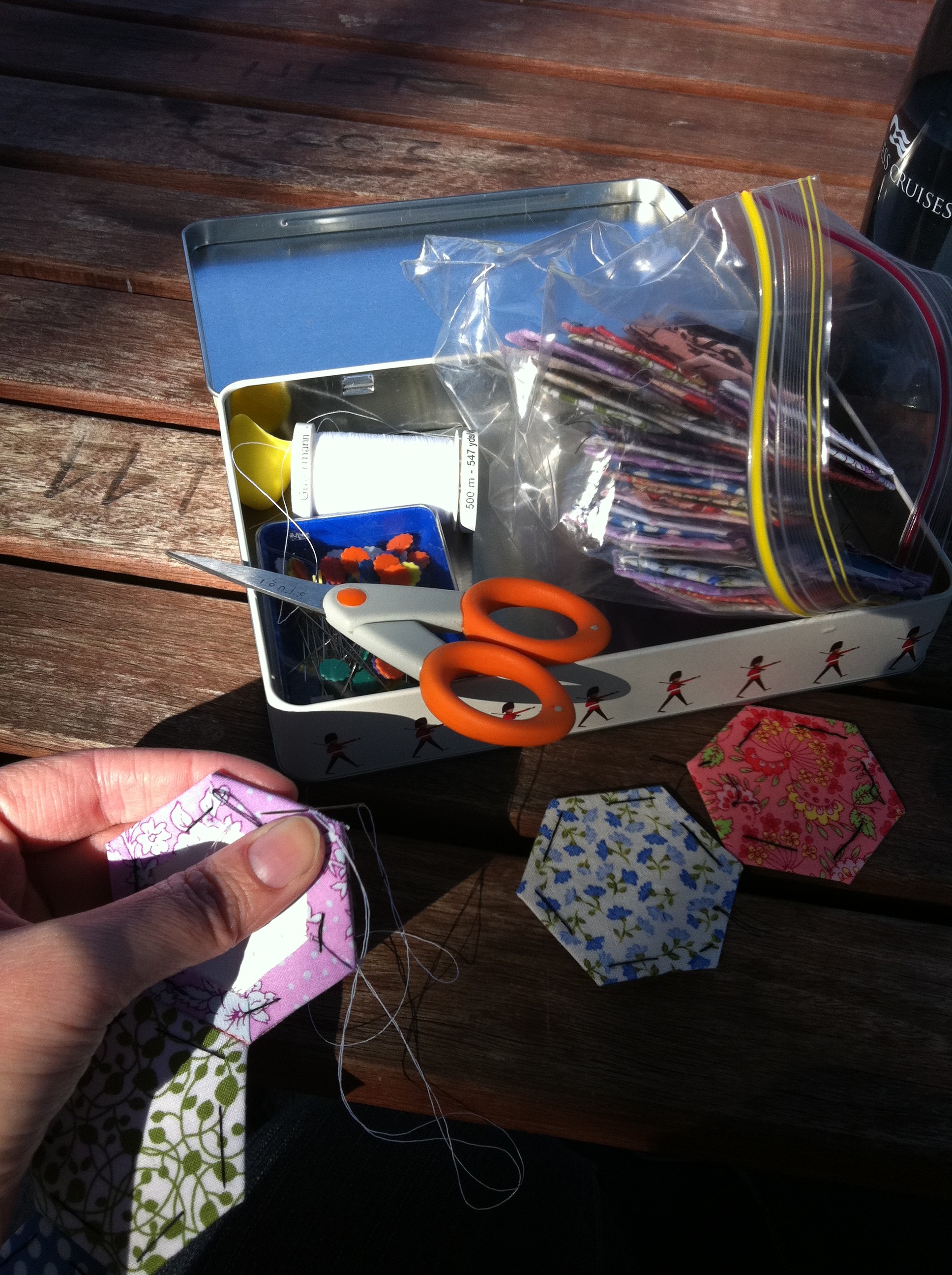 To add to this, I’ve been feverishly creating hexies out of the fabric scraps to feature on the back of the finished quilt….ahhh heaven!!