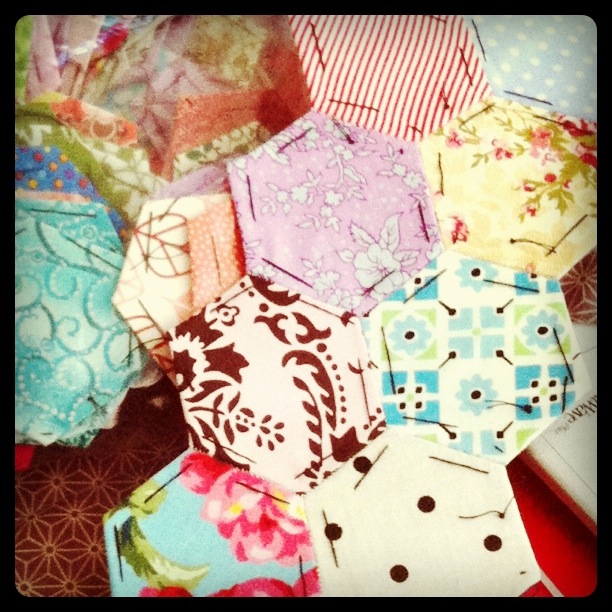 Well, I’ve been busily stitching up my hexie’s for my Scrappy Hexie Quilt