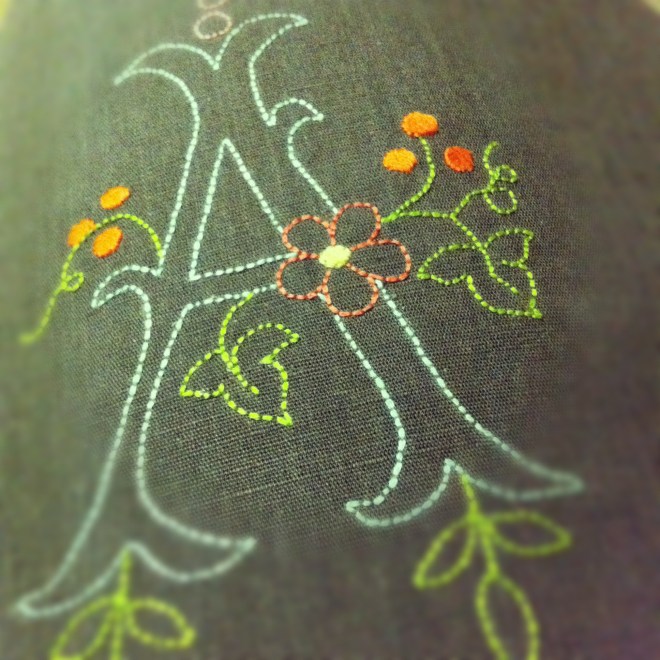 and I’ve started a new embroidery which I devote my hour-long lunch break to. I find that I must do something (even though very small) to occupy my hands and soothe my daily crafty needs…