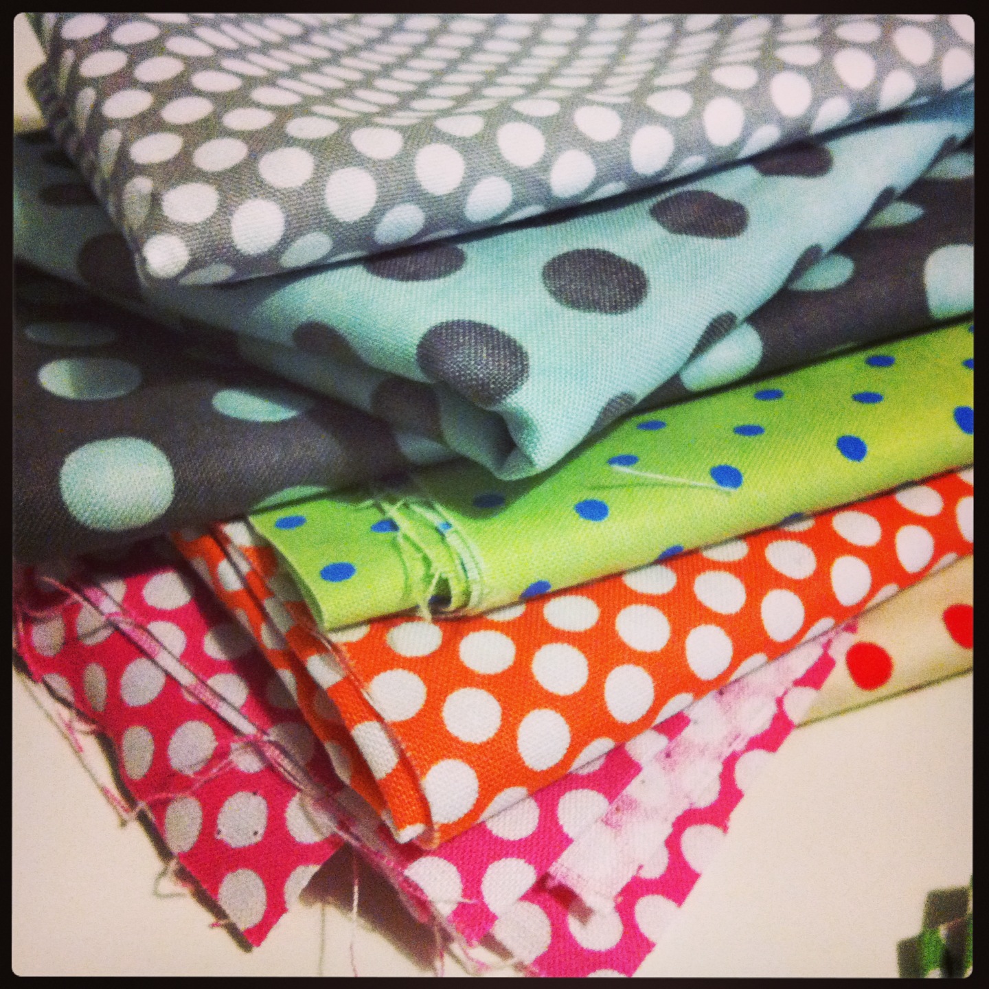 So through 40C+ heat today, I raided my stash for all of my pretty polka-dotty fabrics to begin a new project (involving hexies) that has been swirling around in my mind!