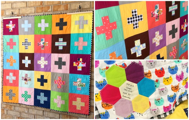 I love this quilt so much. The pops and clashes of colour and print, the fun and whimsical cat print on the back to the classic gingham binding I wrapped the quilt in.