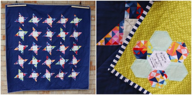 The finishing touches to this quilt are perfect! The backing is spot on with the colours in the print in the blocks and the binding I used was the exact same fabric I initially was going to use when I first starting making plans for this quilt. The label is pretty perfect too if I may say!!