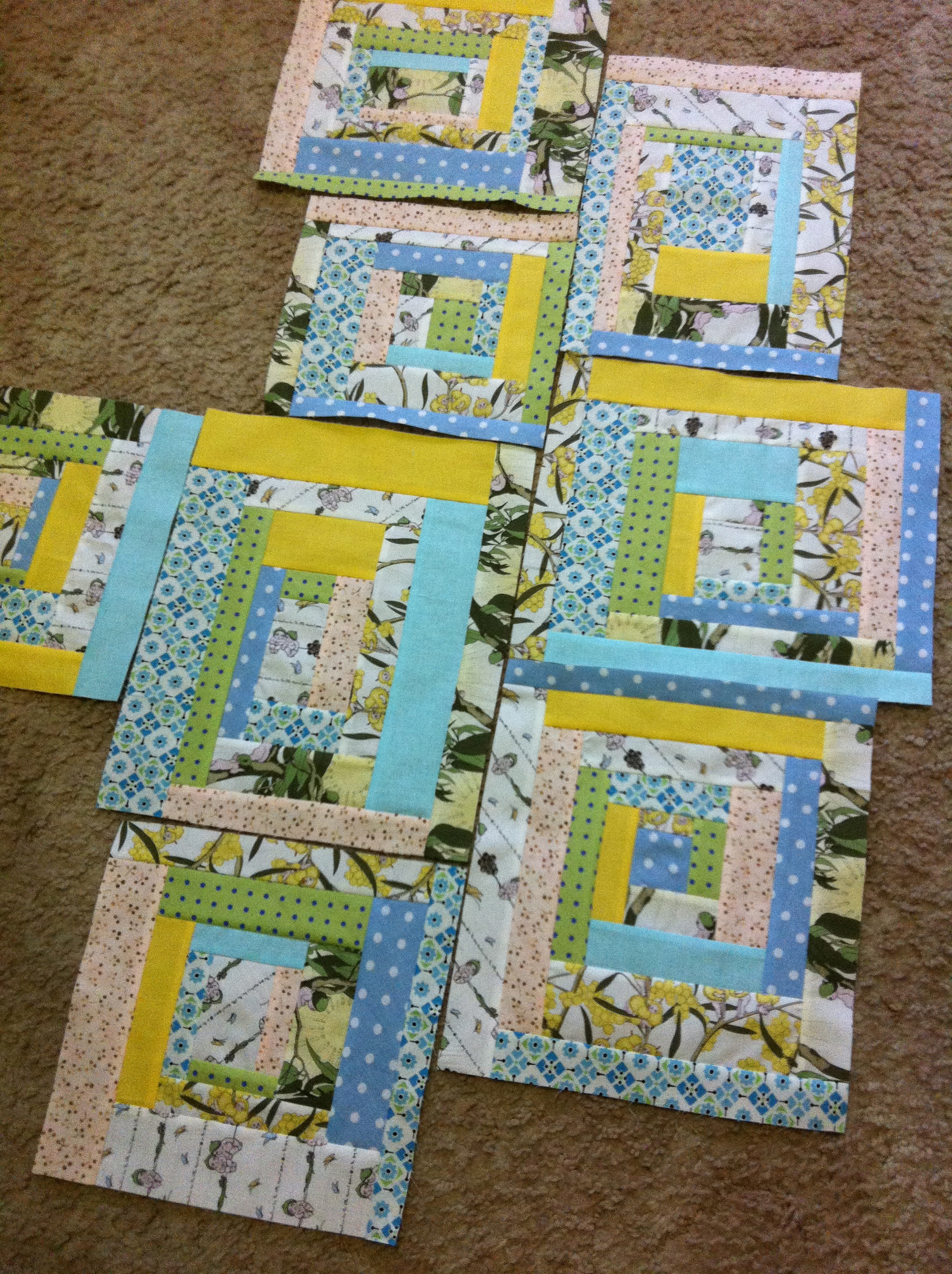 And this is now the direction I’m going in! I’ve added a few more coordinating prints with bolder colours and patterns and decided to do a very modern Log Cabin sort-of design.