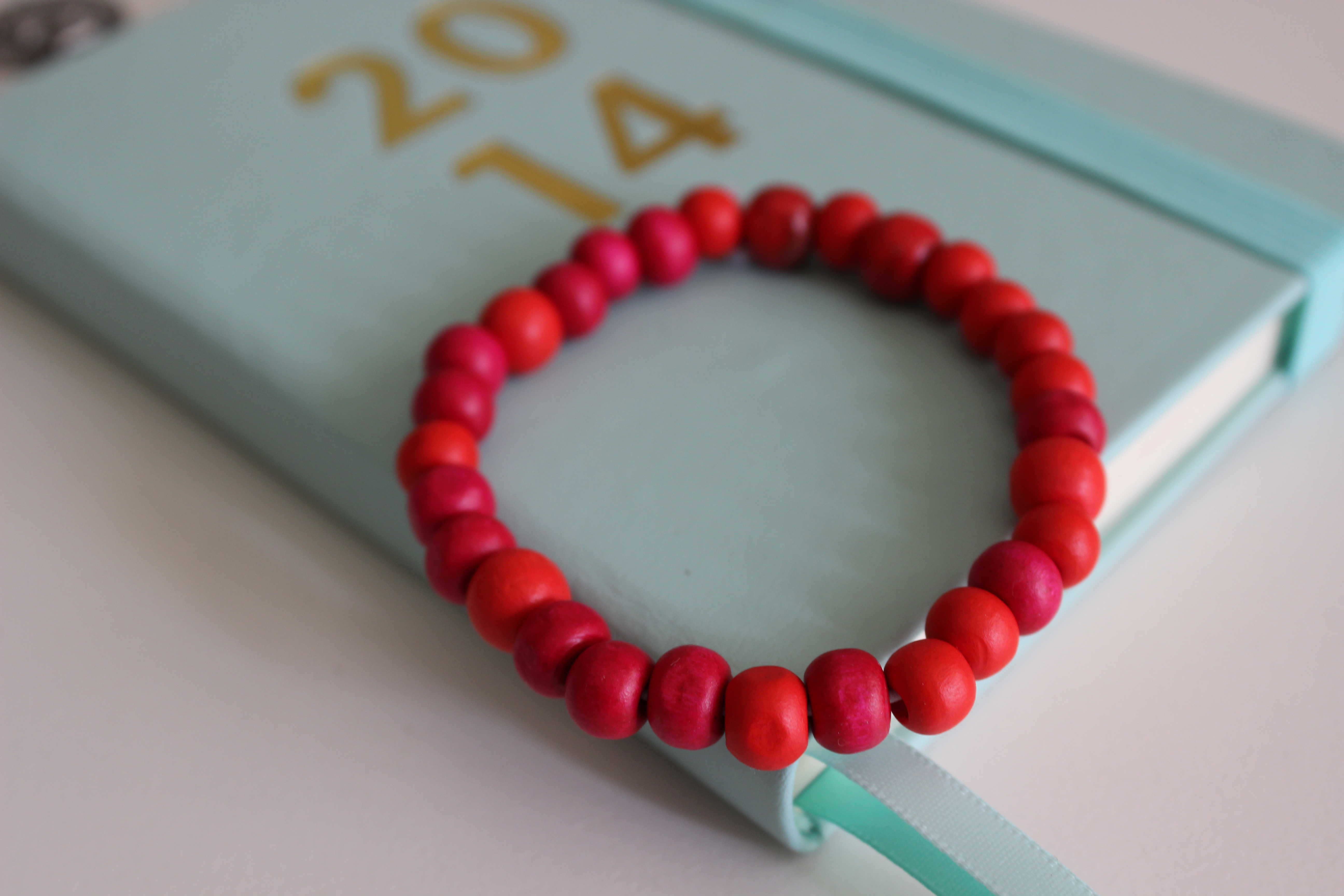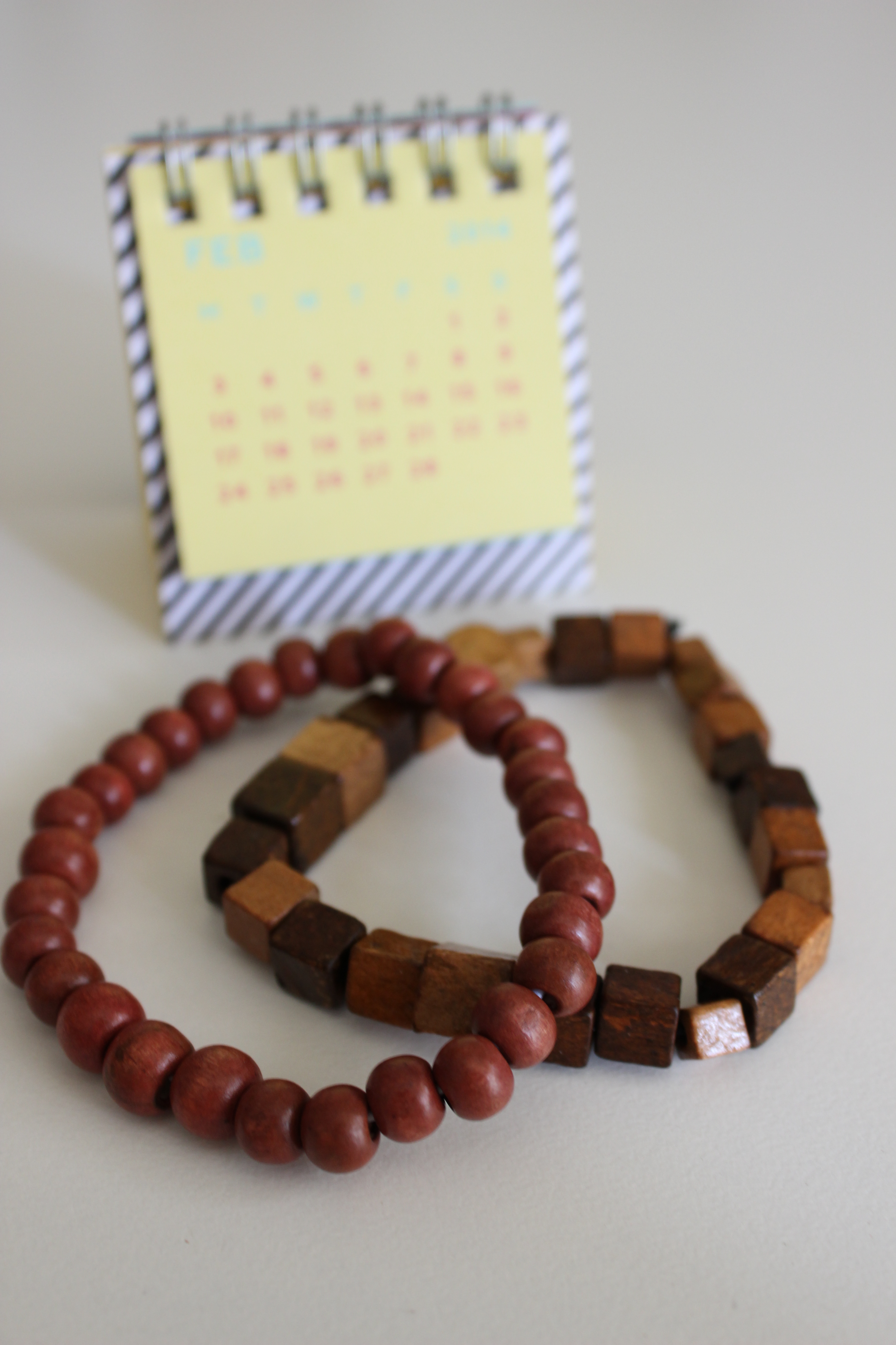 The itch to make something new for myself came when I was innocently perusing the craft aisles in Spotlight and came across a huge bag of mixed wooden beads for $4! Bargain! And knowing I already had millinery elastic at home, I knew I was onto some cheap crafting fun when I got home!