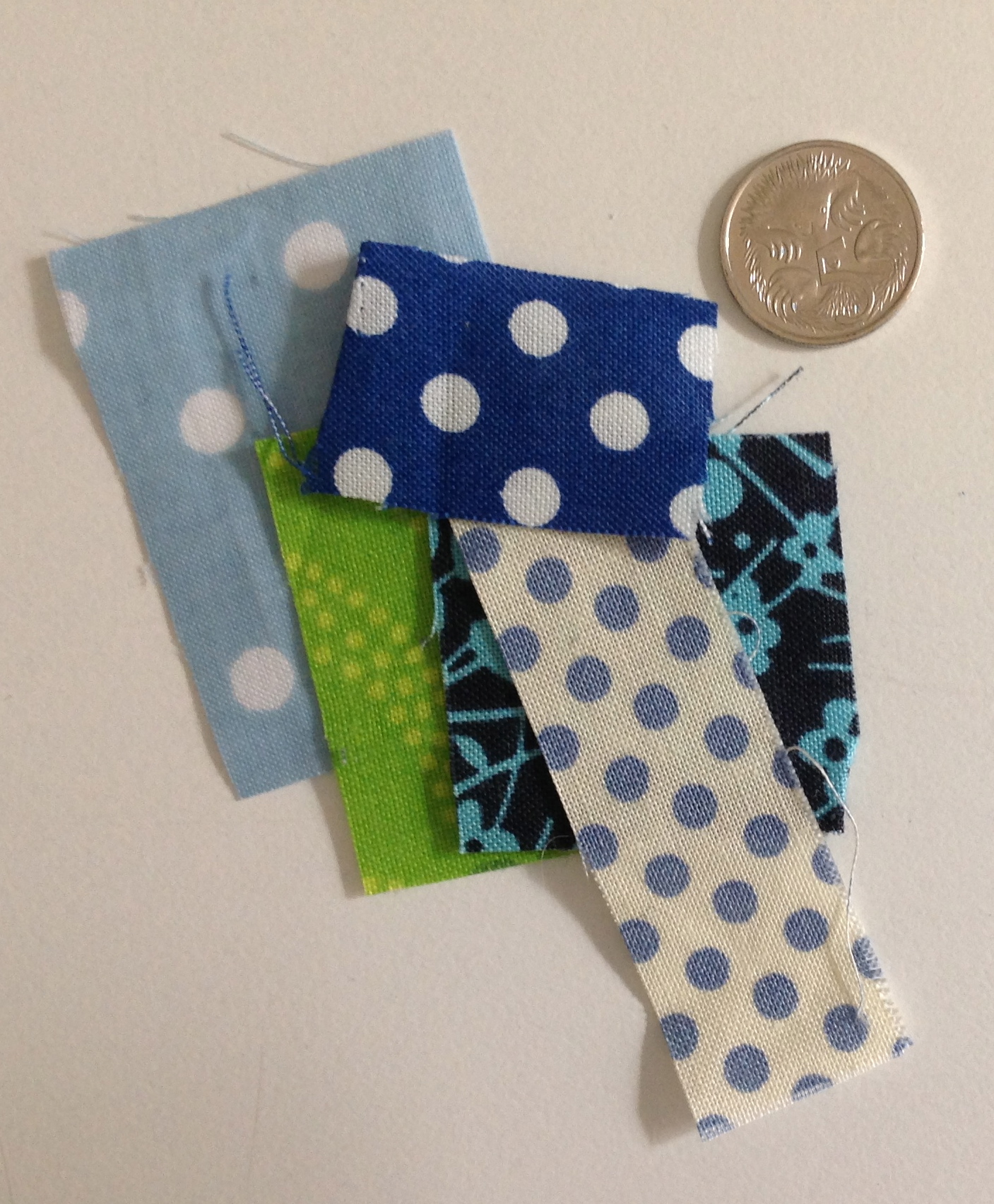 You know what I’m talking about – those little pieces of fabric that are too small for any real use BUT still maybe useful if you were to ever get time to make 5-cent piece size hexies or some weird fabric collage….