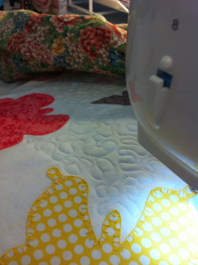 Cut this into x6 2.5″ strips and sewn end to end on a diagonal to create a long binding strip.